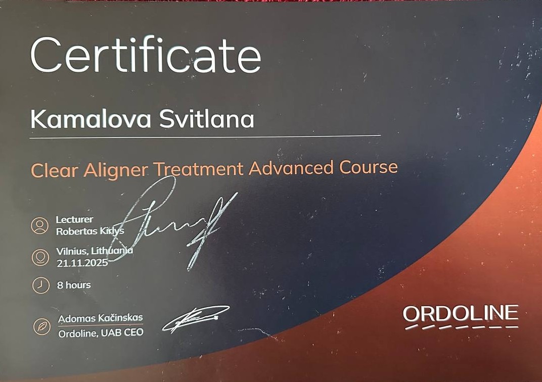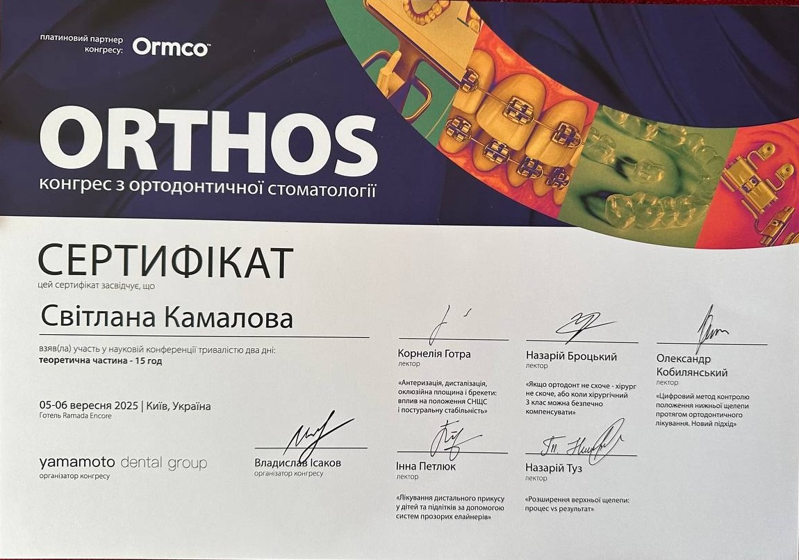 У 2012 роцi брала участь у Европейському Конгресi Ортодонтiв в Iспанii , м. Сатьяго-де-Компостелла