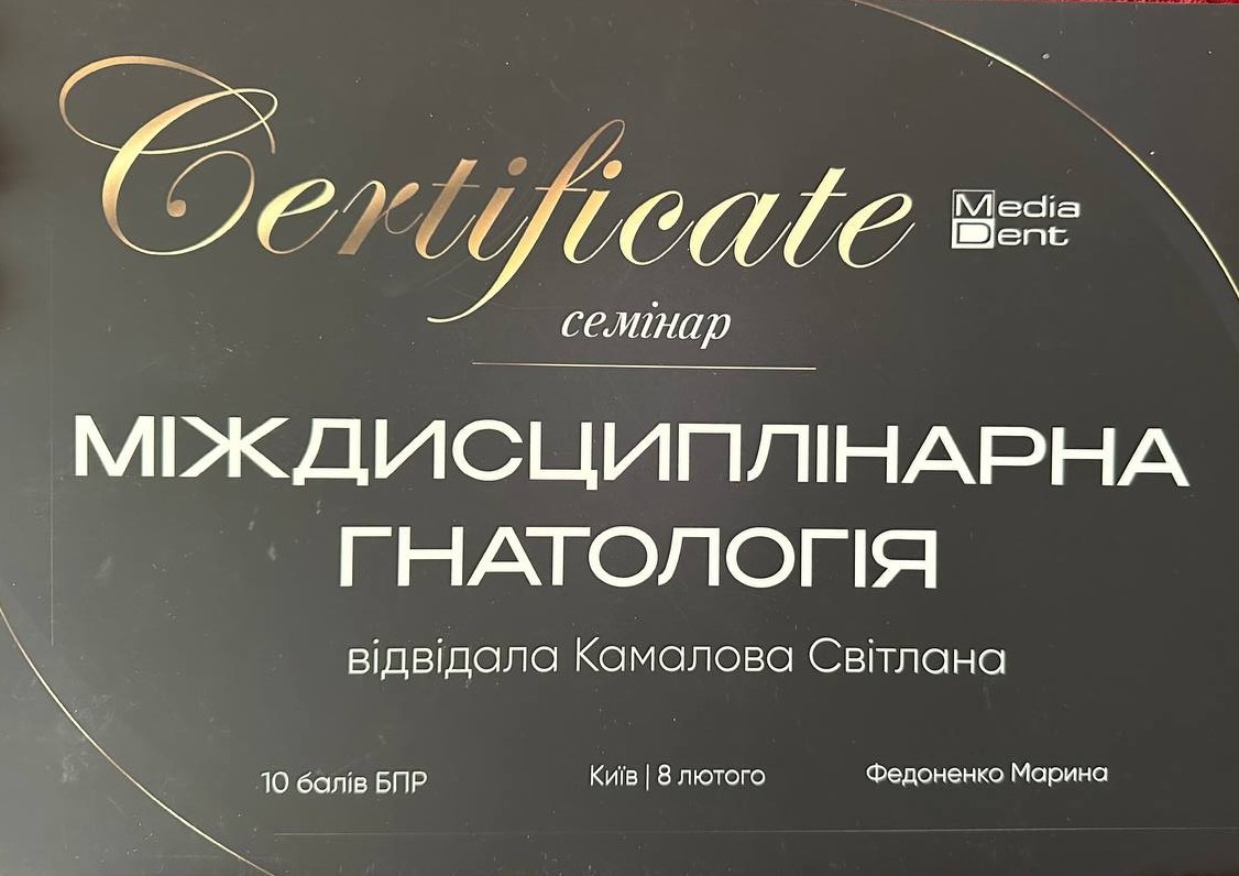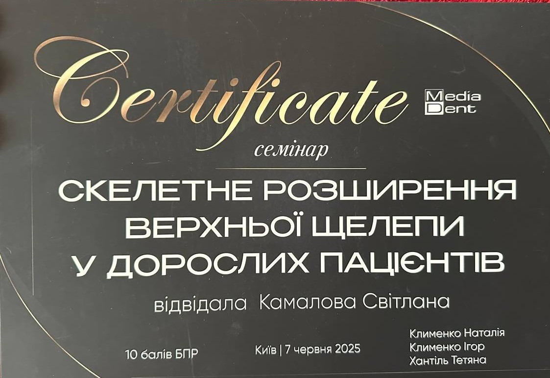 У 2008 році – атестована на вищу категорію за спеціальністю «ортодонтія».